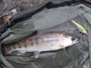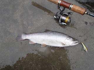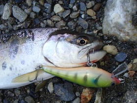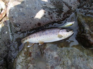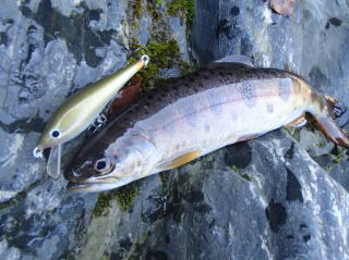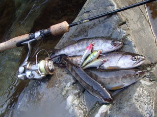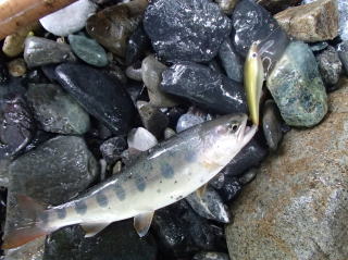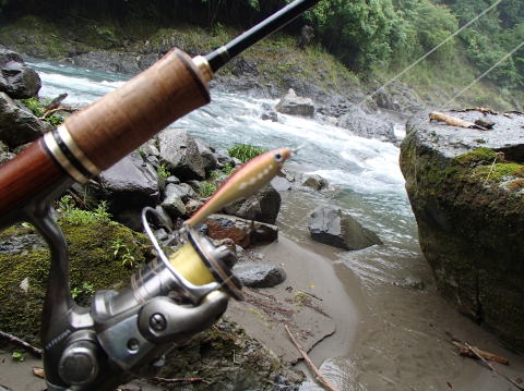 | なんだかここばっかり行ってるみたいな感じですが、ここ以外の釣り場に行ったネタは、釣り雑誌に上げているので、ここには出してないだけで、他にも椎葉とか、…(やっぱここばっかでした) で、渓谷に雲が立ち込め、シトシトと雨が降る6月8日、また川辺川の山女魚を釣りに来ました。 ![]() いつもの所から釣り始めます。 雨模様と云う事も有り、あまり奥へは行けません。 増水で帰れなくなったら大変。 幸い、川はちょっと増水(○丸の雑炊ではなくw) 充分釣りになる水位。 梅雨の渓流と言えば、笹濁りの水が山女魚の警戒心を解き、一気に釣り易くなるハイシーズンのイメージですが、当日は何故か食い渋り気味。何故? それは、あまりに流下する昆虫が豊富すぎて、魚にイマイチ食い気が立たない。或いは流入し続ける山水が、川の水のPHをかなり変えてしまった事等による喰い渋りで有ると思われます。 この日は、川の上流に向かって投げて、真直ぐ下流に引いてくるアップストリームキャストには無反応。 流れを横切るようなクロスストリームキャストで投げ、ルアーを流し気味にゆっくり引いて来て、やっとヒットするぐらいでした。 笹濁りの条件も重なってたから釣りになったけど、水が澄んでいたら魚に人影がモロ見えで釣れなかったでしょうね。 ![]() サイズは小さいながらも、ポツ…ポツと拾い釣りできます。 真ん丸なパーマークと赤い尾ヒレがお洒落なこの地域独特の山女魚さんが相手してくれます。 川辺川の魚は、放流物が多数派なんですが、中には野性味満点の子もいます。 ![]() こいつはエラに掛っています。 喰い渋りの時によく有りますね。 鼻で突いただけで帰るつもりが、引っ掛ってしまったイメージでしょうか? この日は結構バラシが多かったです。 魚自体は沢山居るんですけどね… 筆写が連続バラシに苦しむ間、皆さんは川辺川の梅雨に咲く可憐な花の画像でお楽しみください![]() ![]() ![]() もう、こないかなあ? と、諦めかけたその時に… ![]() はい、ドーン! 来ましたよー尺山女魚!! 対岸でドンガラと川底を掘り返しているその目の前での釣果。 本当に、渓流魚って奴は分からないですねー。 ヒットルアーは自作ミノーLNS50ss。クチボソカラーです。 サイズは…計る前に喰いましたw 多分33cmぐらいです、多分w これは淵頭から下流に向かって投げ、淵頭のガンガン瀬まで引いて来た時に来ました。 ![]() 今シーズンは、なんか、これで運を使いきった気がします。 秋までオデコかも?しれませんので、ご容赦くださいw |