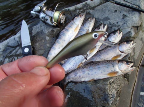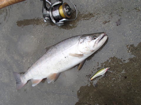 なんとなく記事をあげずにいたらもう5月。 渓流には行っていたんです。 2017年春の川辺川に。結論から言うと、雨がそこそこ降ってくれたおかげで川のコンディションはいつになく良く、工事であちこち掘り返されているにも拘らず山女魚は良く釣れております。 3月頭には工事を嫌って入渓する釣り人も少なかったのですが、「川辺川好調」のニュースはすぐに広まり、4月5月はスレた魚相手の難しい釣りを強いられることに。 まあ、スレるったって、東京近郊の川に比べればかなりマシなんですが、だんだん贅沢になっているんでしょうね、私も。 最初は一匹釣れれば満足だった山女魚釣りも「今日は5匹行かなかったから…」なんて思うように。しかし、その5匹の中には往々にしてウグイやカワムツも交じっているから現状は… まあ、良しとしておきましょう。 ![]() 水量豊かで工事以外の泥濁りもほぼ無い川辺川。 今シーズンは魚も残り好調です。 隠れ家が有るということは、鵜やビリや毒流しからも守られる事を意味し、こういった渓相が保たれるのは景観上も、釣り場保全上も良い事ですね。 私が釣るのは、いつも神屋敷あたりの人里から、奥地の椎原ダム周辺まで。 秘密に出来るほどのポイントは一つも有りません。だから、狙いのポイントはしばしばこんな感じになっています。 ![]() はい!工事キター!! もうね、上から下までこんなんばっかですよ。 でも、悲観したもんじゃありません。 立ち入れない現場以外の、工事直後のポイントや、今やってない場所をコソーリ流してみると… はい、きたー! ![]() 良い魚が残っています。 ヒットルアーは自作スローシンキングミノーLNS50ss。 ドンガラと石をひっくり返し続ける50mほど下流での釣果。渓魚は自分に直接危害のない物は殆ど気にしないみたいです。 時間は昼前。こんな魚がまばゆい日差しの中でルアーにドーン!と当って来るから油断できない。 ![]() 順調に釣果を挙げるスローシンキングミノー。 今はヘビーシンキングが主流ならしいんですが、根掛りが怖くてまだ手を出していません。 ってか、皆がヘビシン、ヘビシン、言ってる時に一人でスロシンとノーシン(フローティング)使ってるから、充分釣りになります。 河口湖で一人バズベイト引き始めると、その人だけ釣れる状態に近いでしょうか? ![]() オーパーツ発見!この石段は自然現象では説明が付かない!!!!!(本当は付くそうです) 巨人の石段みたいな渓谷を釣り上り、時々山女魚を上げながら進撃する事2時間… そろそろ日も傾きかけるころ、それは来ました。 ![]() はい、岩魚、ドーン! 何故か川辺川でも時々岩魚が釣れます。 どうしてなんでしょうね?放流の稚魚にでも混じるんでしょうかね? この岩魚は相当野性味が強く、野生化しているのかもしれませんね。 どこで卵を生んでいるんでしょうね?興味は尽きません。 ![]() この顔がすごい。 ヒットルアーはLNS50ss落ち鮎カラー。 はっきり言ってシーバス用に考えたカラーですが、渓流でもいけます。 ![]() この滝壺から奴は出てきた。 ここも所詮人目に着きやすい、どうってことないポイント。 地元の人しか知らない(って言うか、入れない)ような秘蔵ポイントにはどんな怪物が潜んでいるやら。「川辺川の底知れぬ片鱗を見たぜ…」 私も、いつか夢の40up山女魚に出会えるかもしれません。 そんな夢を見つつ引き上げます。 ![]() これこれ、帰ったらこれですよ! これだから渓流は止められない。 |