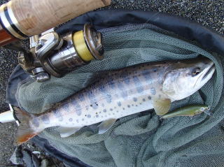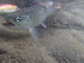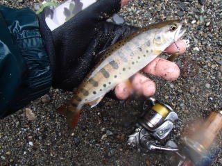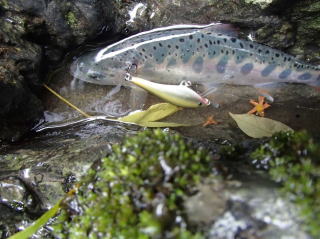 今年もやって来ました!渓流解禁です!私が一番よく通う渓流釣り場、球磨川支流、川辺川の近況を、ちょっと上げてみようと思います。 去年からちょくちょく雪が降ったおかげか、川の水量は平常。水位が低くて釣り辛いという事は有りませんでした。 水は澄み、菜の花や梅の花が香る心地よい春。魚達も期待通り出てきてくれるかな?… と、思って始めてみたのですが、何故か魚影無し、ライズなし、チェイス無し。 私が投げる新作スローシンキングミノーは何事も無く翡翠のような水の中をキラキラと輝きながら泳ぎ続け、それを遮るものは何も有りませんでした。 もしかして…網…入った? 網ならまだいいんですがね… 時々お薬がね… 嫌な予感を増幅する漂流物も流れてきます。 ハエ(こちらの地方名でオイカワの事)とか、イダ(やはり地方名、ウグイの事)が…ヒクヒクしながら流れてきます… はい!お薬決定! なんか、これ、たまに有るんですよね。リアル沈黙の春。 イダすら見られない時はまずこれです。違法なんですけどね…なんか…習慣としては残ってるのかもしれませんね… ま、気分を変えて上流へ… あれ? なんか? ついてる!? ![]() うおっ!キター! 今年の初山女魚です。 ちなみのヤマメと打ち込んでも山女魚に変換はされません。 古い文献には「ヤマメ」の表記より「山女魚」の表記の方が多いのですが、最近は逆転しているんでしょうか? そう言えば、世論を素直に「ヨロン」と読んだが為にセロン派の国語教師から糾弾吊るし上げを食らった事は無いでしょうか? 私の黒歴史ファイルには深々と刻みつけられています。 (奥歯噛み、涙浮かぶ) あ、関係無いですねw この山女魚は流心のA級ポイントを完全に外したC級竿抜けポイントから飛び出してきました。毒を避けて浅瀬に逃げたようです。しかし、私に捕まり… なんというか… 美味しゅうございましたw このポイントでは、あまり数を望めそうになかったので、一挙に宮園の小学校の上流まで行きます。 ![]() ちょっと、いつも漁券買う店で購入したまんじゅう食べて一休み。 場所移動したら、いきなり水面にライズリングが見えました。 イダの魚影もたくさん見えます。これこれ!これですよ! 御覧のように日も高く、とっくに昼も過ぎているから先行者の足跡を辿りながらのちょっと難しい釣りを強いられます。 有望なポイント周辺では、必ずと言っていいほどロリ山女魚がルアーを追って来ます。このロリチェイスが有るまで、割とぞんざいに投げながらどんどん上流へ進み… 来ましたよ… ロリっ子達が… 見た感じ、魚が付きそうにもない浅瀬。 しかし、「二本以上の流れが合流」、「下に入って隠れられる石あり」、「鳥の脅威から身を守る白泡あり」等の好条件が重なっている場所なら、意外に山女魚は潜んでいます。これが釣れたのもそんな浅瀬でした。 ![]() 放流されてから結構立っているようで、小さいながらも野性味満点の山女魚さんです。ヒットが有った場所からは慎重に釣り進み、この後、このサイズを何匹か追加。 この日はそこそこ釣れた所で引き上げます。時刻は午後5時ぐらい。仕事上がりに釣りに来る人のために、魚を残しとかなきゃいけません。 まあ、私が自作ルアーで釣ったぐらいじゃ、居なくなりゃしないんですが、警戒して釣れる魚が残らなくなる可能性は有ります。 ちなみに私、リリースはほとんどしません。 釣れたらほぼ食います。その代わり多くは釣り上げません。 そこそこでいいんです。 本来、魚が食いつく筈もないオモチャで魚を掛ける道楽、それがルアーフィッシングだと思っているからこれでいいんです。 後日、父を連れて再び川辺川へ。 ![]() 鹿の声を聞きながら父の足跡を追い、この日も、そこそこ釣り上げる事が出来ました。 ![]() 新色、ブルーギルカラーで釣れた一匹。突っ込み鋭く、顔もシャープで野性味満点ですね。 ルアー釣りの良い所は、餌釣りでは攻め辛い浅瀬や強風下でも釣りになる所。 竿抜けポイントの残り山女魚を釣るのに適しています。 ![]() 父も結構釣り上げています。 父に渡したのは旧型自作ルアーだったのですが、まだまだこれだけのポテンシャルを持っていました。 この日は夕マズメまで父に付き合い、父9匹、私3匹の釣果でした。ちなみに、最近、父の方が多く釣る事が多くなってきました。 最後に掛って来たのは銀化になっていました。これが長く生き延びると、釣具屋の魚拓に見られるような尺上の大山女魚に育ちます。川辺川では、海に下る余地が無いのでサクラマスにはなりませんが、サクラマスになる素質を持った魚です。 ![]() 今シーズンは大変良い滑り出しになりました。 川のコンディションも大体良好で、評判によれば、コンスタントに釣れているようです。 この後、工事の状況などにもよるでしょうが、例年6月頭頃まで普通に釣れ、それ以降は高水温により釣りが一挙に難しくなります。 釣るなら、今のうちですよ。 球磨流域にはその他、私も行っ