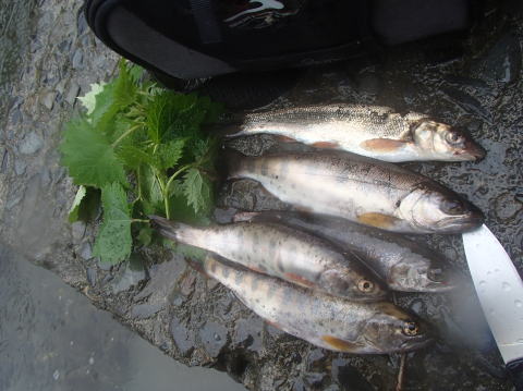 | ええ、今気付いたんですよ。 この下の記事二つが二年先の日付になっていた事を。 そんな事だから釣り新聞に投稿したネタも全てボツになるんですよ。 わかっています、今更日付を修正したって、この記事に気付いてくれる人自体…本当は誰も居ないんです… 「近場や渓流、箆鮒の記事も大歓迎です!」 …文面通りだと思ってネタを送り続けた日々…ああ…二度と帰らぬあの日。 そう、新聞は西日本版なんだけど、買うのはほぼ全て福岡の人だけだと云うことに事に気づくのが遅かったんです。 「(福岡市から)近場や(福岡の人が行きそうな)渓流、(福岡でも有名な場所に限り)箆鮒の記事も大歓迎です!」 …と、文脈を正しく読めなかった私が悪いんです。 通信簿にはいつも「空気を読めず協調性に乏しい子です」と書かれてい(た気がし)ました…」 もう…吊るしかないでしょう… いや…もっと手軽に手kub… ヽ(*`Д´)ノうわあああああ!!!!! 行ったるわ―!福岡の人が行きそうな渓流釣り場! 日本中で有名な大山女魚の釣れる釣り場、川辺川で(f-1の32cm(バス持ち)を上回る) グッドコンディションのネイティヴトラウトgetして一面に載ったら―! と、云う訳で自殺回避と新聞紙上での失地回復を目的に川辺川に釣行しました。 前日に父がこの川へ行き、喰い渋りながらもけっこう良い山女魚を釣ってきたので、(この時点では)私にも釣れる筈と思って鼻息も荒く出かけました。 ![]() 風にたなびく短冊が夏を感じさせますね。 この日の気温は、五木村でも29度。 暑さと日差しで早くも嫌な予感がしてきました。 ![]() 華やぐ蝶々達。 綺麗に見えますが、鹿の尿に集まって塩分を吸っていますw そう考えたらこの世の全てが急に汚く見えて盗んだバイクで走りだしたくなりました。 (取りあえず、隣に尿を足す) ![]() 最初に入ったのは坂本川合流点よりちょっと上流。 いかにも釣れそうに見えますが、もう8月10日を過ぎれば、世間はボチボチ盆休みに入っているらしく、先行者の足跡だらけの厳しい状態。 ええ、ここでも空気読めていなかったんです。 谷底が私を呼び(続けている気がし)ます… ![]() (´;ω;`) やったよ!尺上(ウグイ)getしたよ! この子だけは、どんな厳しい時も来てくれます。 困った時に近くに居てくれる人が本当の友達らしいです。 ウグイは、もはや私のマブダチ。 「当然…リリースしてくれますよね?」 (ウグイが向ける信頼と確信の眼差しを背に受け、私は無言で焚火をはじめる) ![]() やっぱ、これですよw 現地で茹でた蕎麦と共に塩焼きを食う! 正に至福w ミヤマイラクサのおひたしも添えてあります。 腹が膨れた所で釣り再開。 ![]() 淵や流心は全て打たれた後なので、こういった浅場の竿抜けを地道に流してゆきます。 膝ぐらいだろうと思える流れの中にも、所々エグレや石の陰などが有り、そういった場所には山女魚が残されているかもしれません。 ![]() したら!きましたよ! やっぱり岩陰に隠れていました! 自作ミノーLNS50ss(クチボソカラー)での釣果です。 ![]() その後は、この程度のロリ山女魚が何匹か釣れたのみ。 まあ、まともなのが釣れたんだから記事に出来ない事も無いんだけど、あの程度じゃね… (福岡くんだりから高速代まで払って)来ようと思うレベルのニュースじゃないですね…ま、結局ホームページのネタに使うからいいんですけどね。 ![]() 今回は、魚がスレてる事と、高水温による喰い渋りのダブルパンチで、新聞ネタに出来るような魚は釣れませんでした。 でもね、喰いが渋い中でも何とか釣れたんだから、いいんじゃないでしょうか? 山の恵みをちょっとだけいただく、 そんな釣りが好きなんですよね私は。 (ちなみに、この花の葉も食えます。株ごと引き抜くと絶滅するらしいので、葉を二枚ずつぐらいもらいます) |