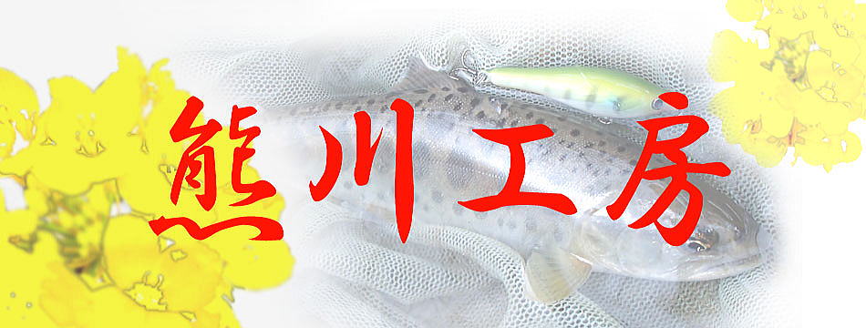 ハンドメイドルアーと釣り情報のサイト、熊川工房にようこそおいで下さいました。このサイトでは、主に私が作ったハンドメイドルアーでの釣行記と、ルアーの販売案内を扱っております。ただ木を削ったルアー的な工作物から始まった私のルアーは、やがてプラグを買う必要が無いまでになり、いよいよお客様に使っていただく段階に達しました。まだまだ少量、短期間の製作になりますが、ゆくゆくは拡大してゆき、誰もが知っている定番ルアーを出していけたらいいな…などと思いながら細々とやっております。