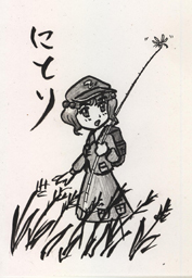 白樺の林を抜け、(もみ)の木の森も過ぎ、硅砂の砂浜へと下って行く坂に差し掛かったところで、霧にかすむ湖岸に、にとりの姿を見付ける事が出来た。